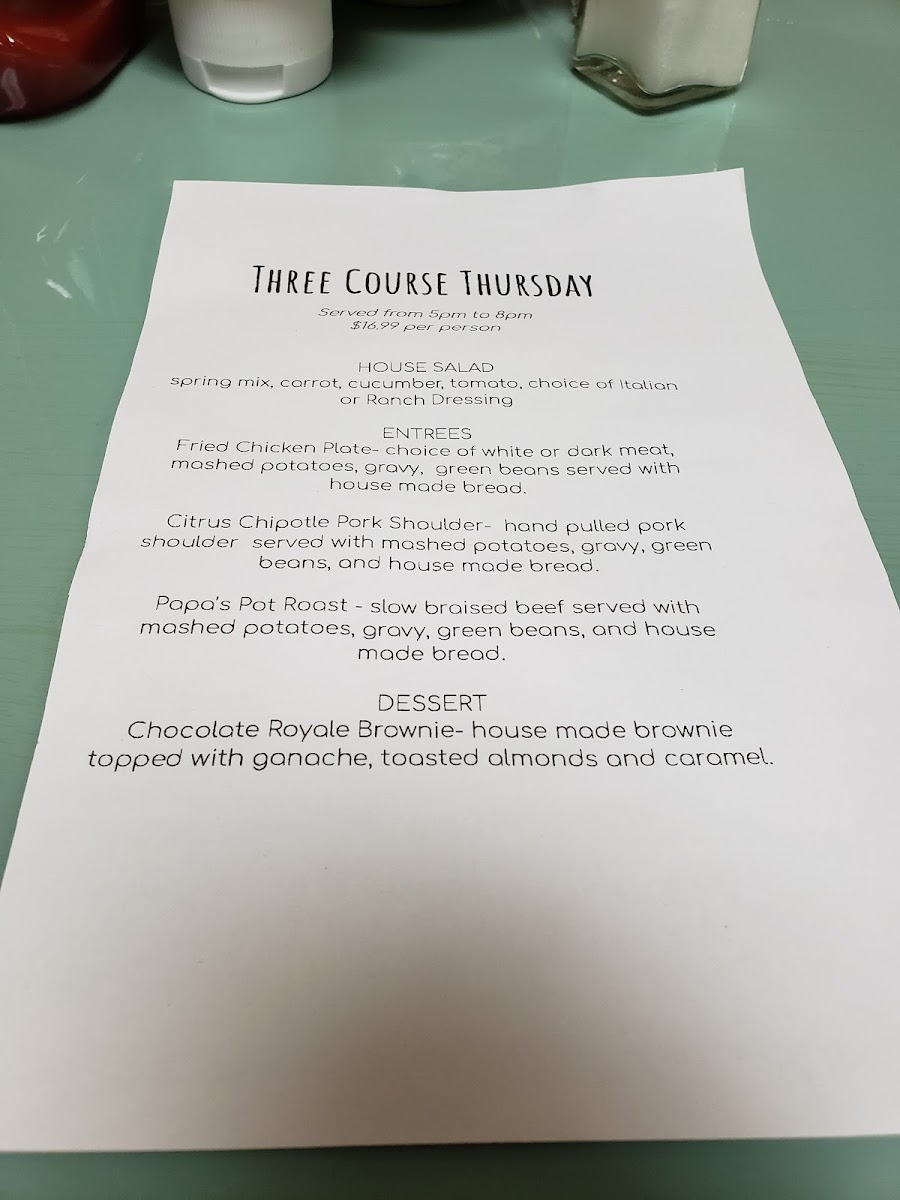 Start your meal with one of their hearty soups, perfect for a midday break or a cozy dinner starter. Blue plate specials showcase well-loved dishes such as meatloaf, country pork tenderloin, and a variety of comforting sandwiches—all served in portions that feel just right. And no meal here is complete without a sweet finish like the rich Chocolate Royale Brownie, a quietly indulgent dessert that pairs well with good company and a relaxed atmosphere.
