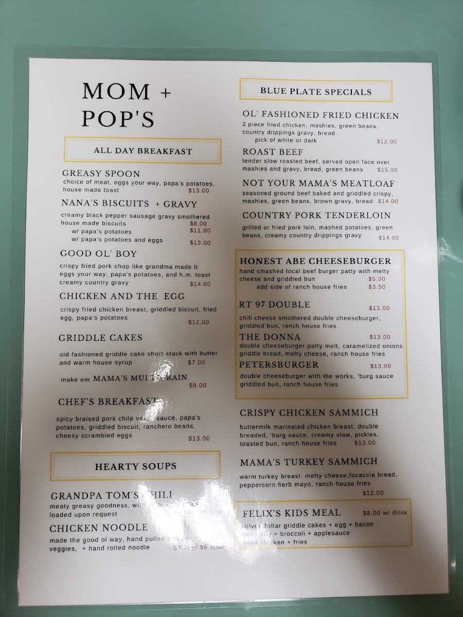 The setting at Mom Pop’s supports an easygoing dining experience where warmth and simplicity take center stage. Whether you’re sharing a quick lunch, enjoying a comforting dinner, or treating the kids to a classic meal with fruit and fries, the menu items here fit naturally into the rhythm of everyday moments. The overall experience resonates with friendly service and a welcoming space, making it a place where familiar flavors and approachable dishes invite you to linger comfortably.